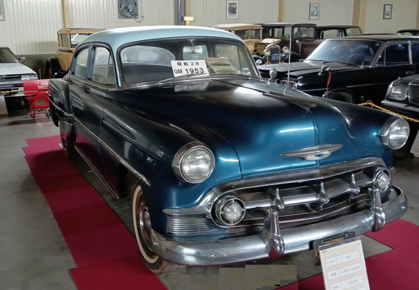 シボレーの名は、創業者であるスイス生まれのレーサー兼エンジニアのルイ・シボレーに由来している。 シボレーデラックスは1941年~1952年まで販売されたシボレー自動車のトリムライン。1940 年代の市場では販売台数トップだった。 外装は滑らかな曲線を描き、クロームとステンレスのトリムが施されてい。 特徴的なグリルには 3つの歯が組み込まれ、グリルの中央と両側に丸いパーキング ライトが取り付けられている。 52年以降もオーストラリアやインドなどで生産された。シボレーは最もアメリカ車らしい車とされ熱狂的なファンで今も人気が高い。 当館には特に人気の高い1956年ベルエアノマド・ステーションワゴン2ドアも展示している。 車 種 シボレーデラックス4ドアセダン 年 式 1953年 寸 法 全長502㎝、幅181㎝、全高161㎝ 排気量 3850cc/直列6気筒